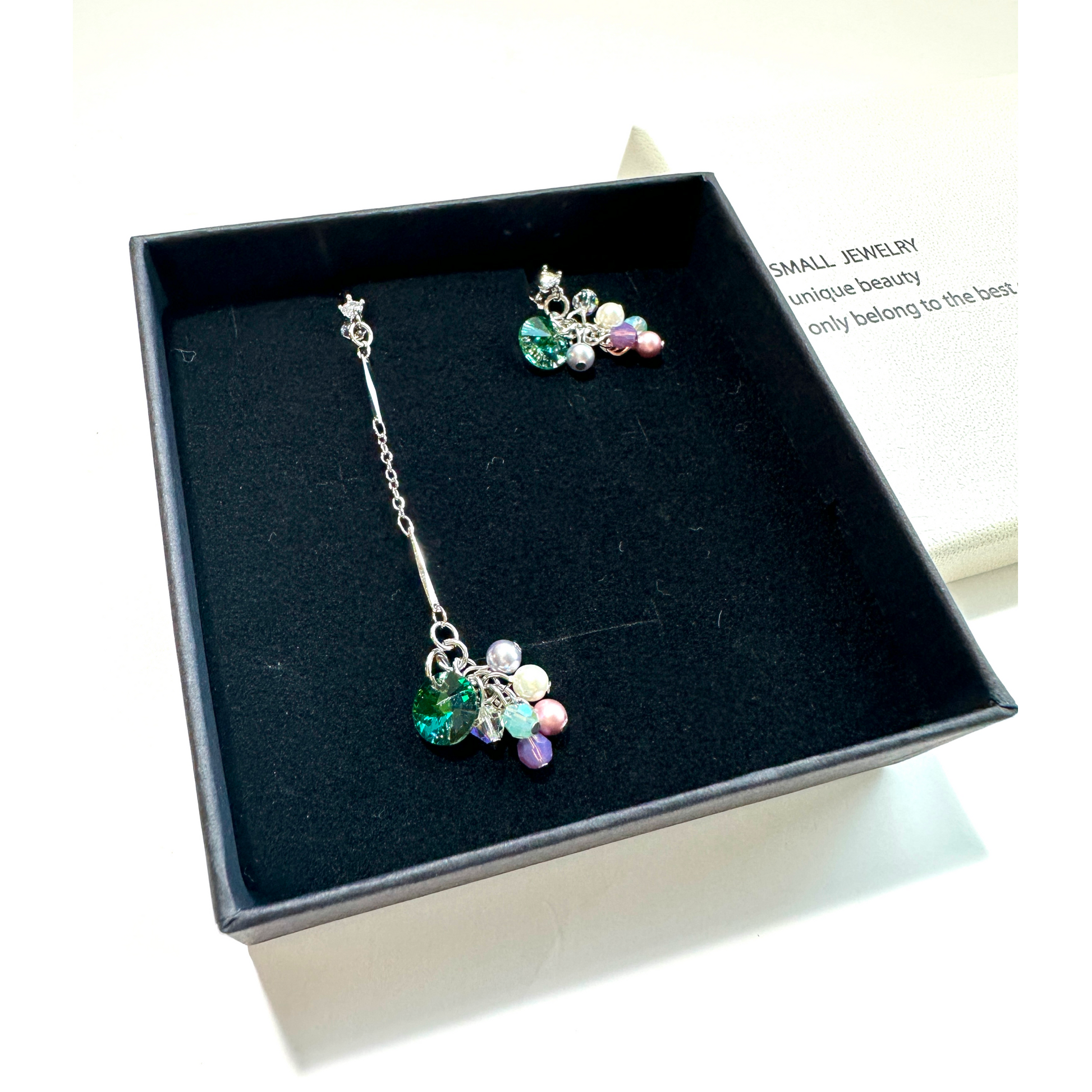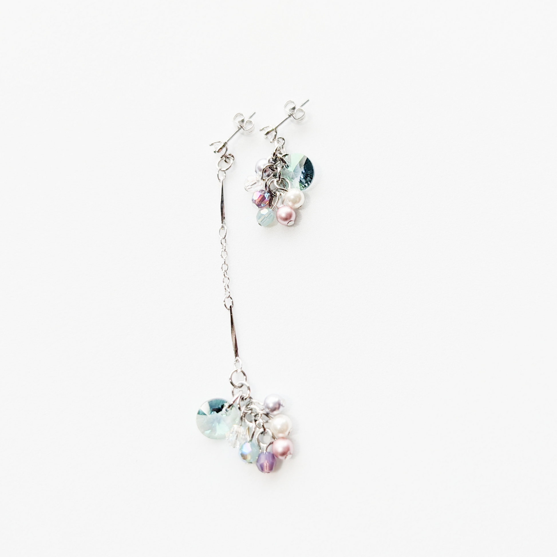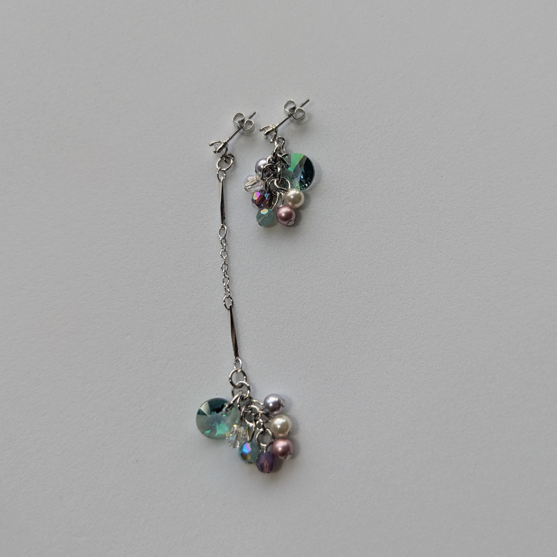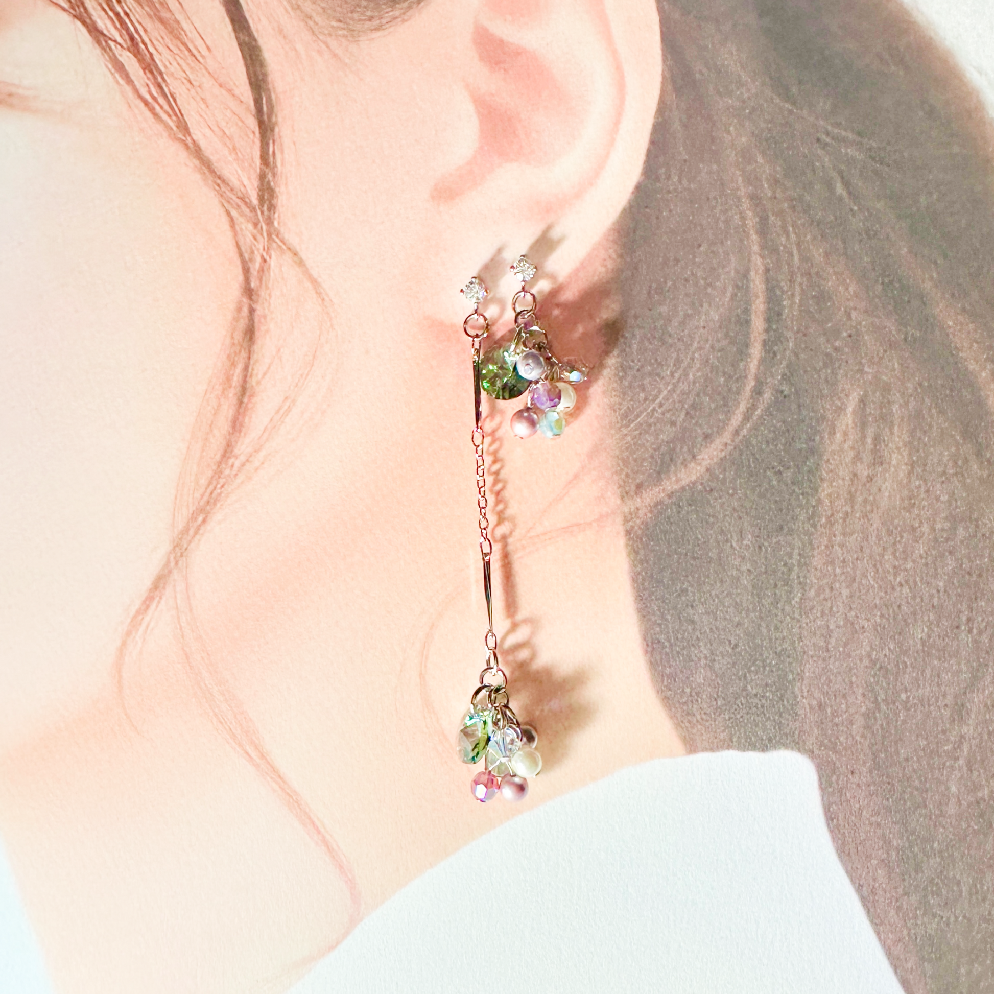 Bijou Asymmetry earrings 002 | ビジューアシンメトリー ピアス | オーロラグリーン