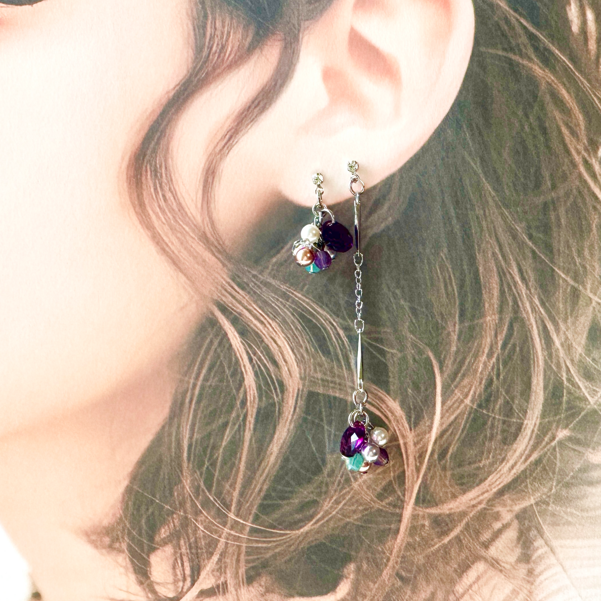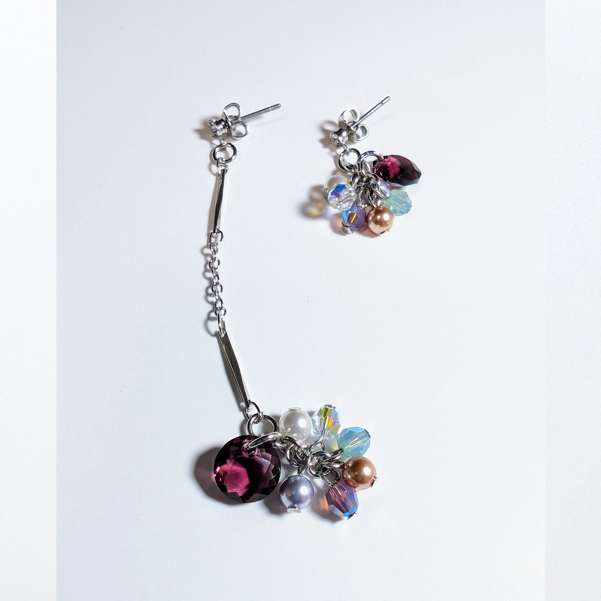Bijou Asymmetry earrings 003 | ビジューアシンメトリー ピアス | パープル