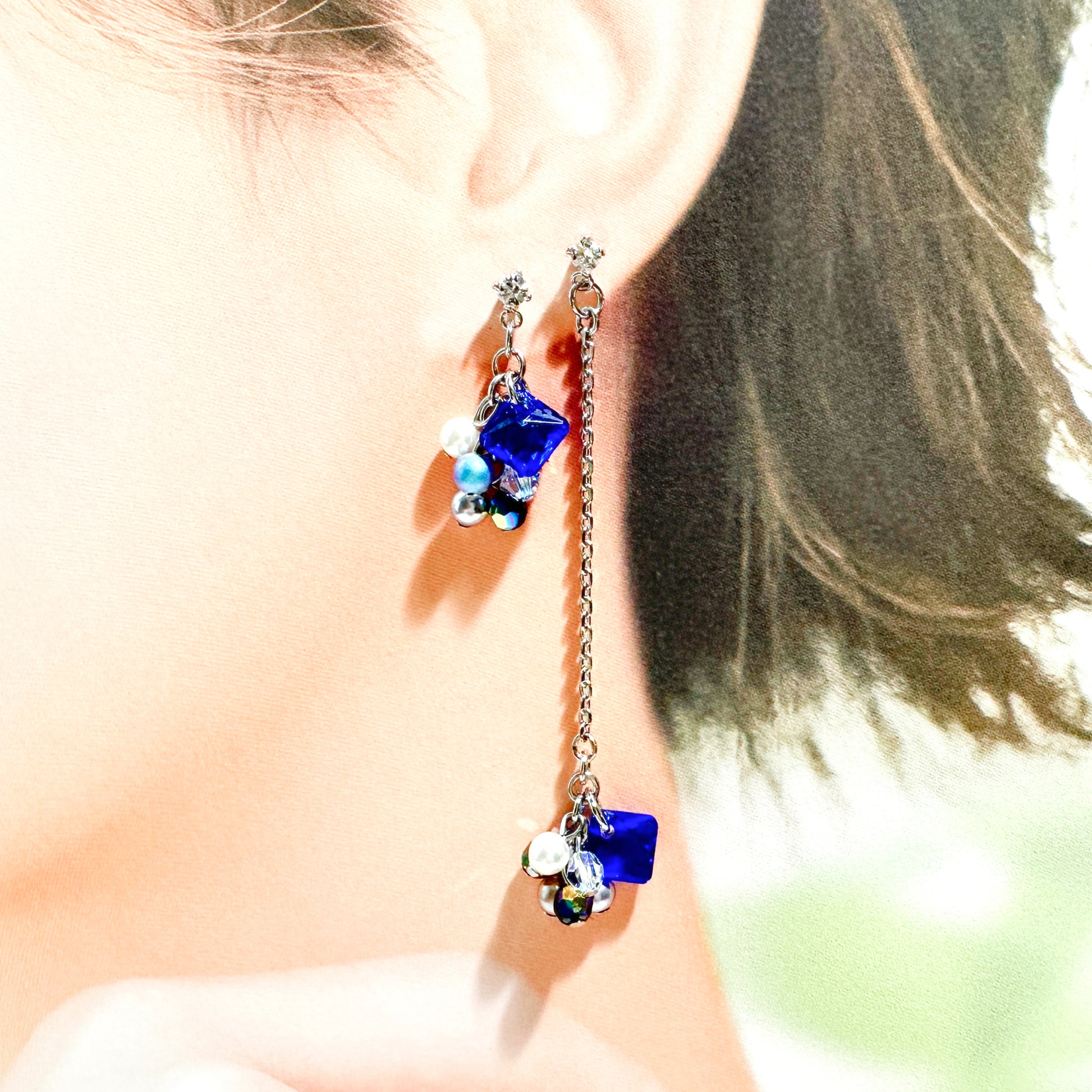 Bijou Asymmetry earrings 007 | ビジューアシンメトリー ピアス | ブルー