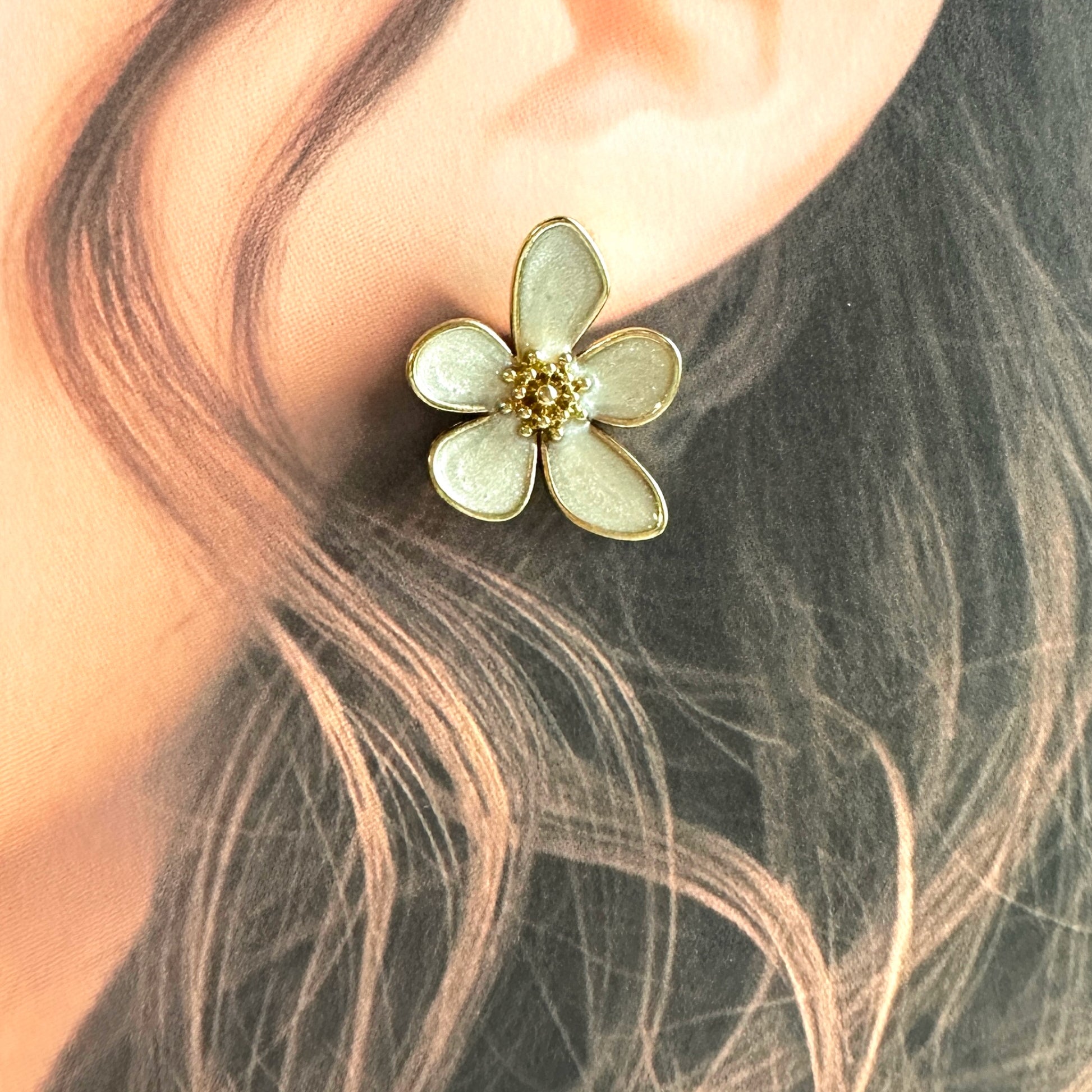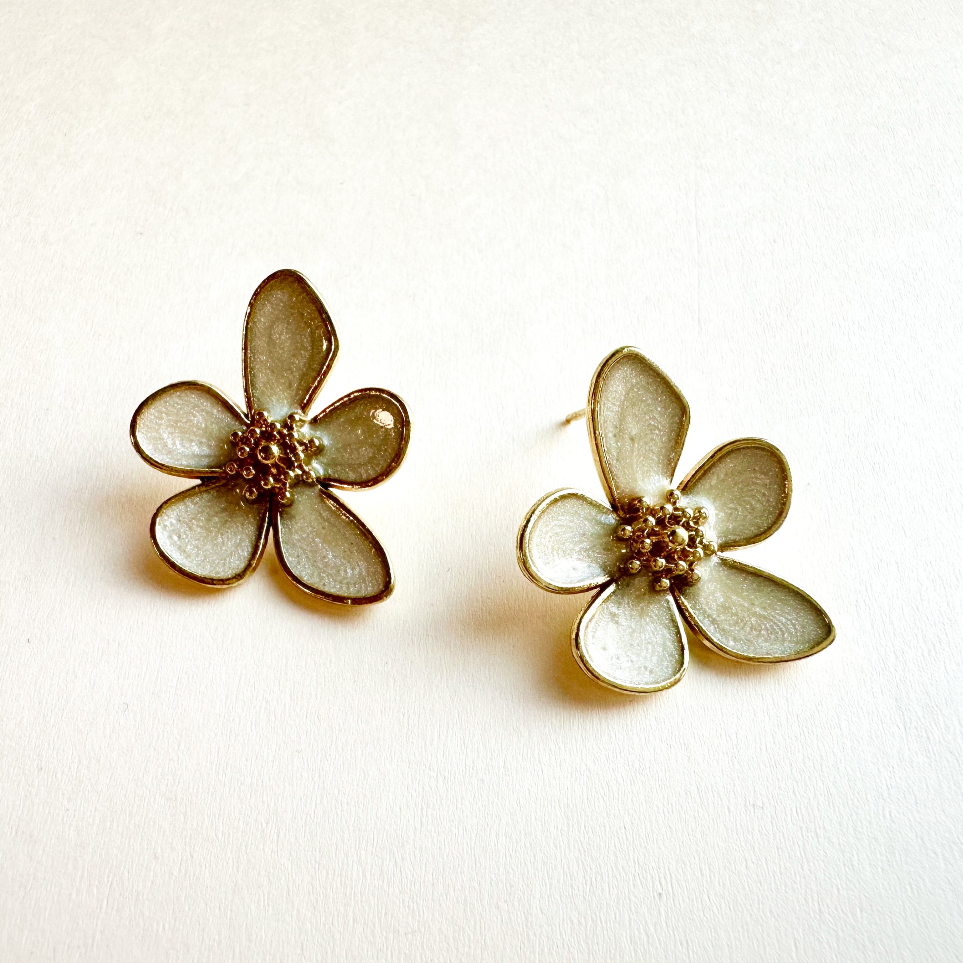 花の形のメタルにホワイトカラーが可愛いピアスです。
