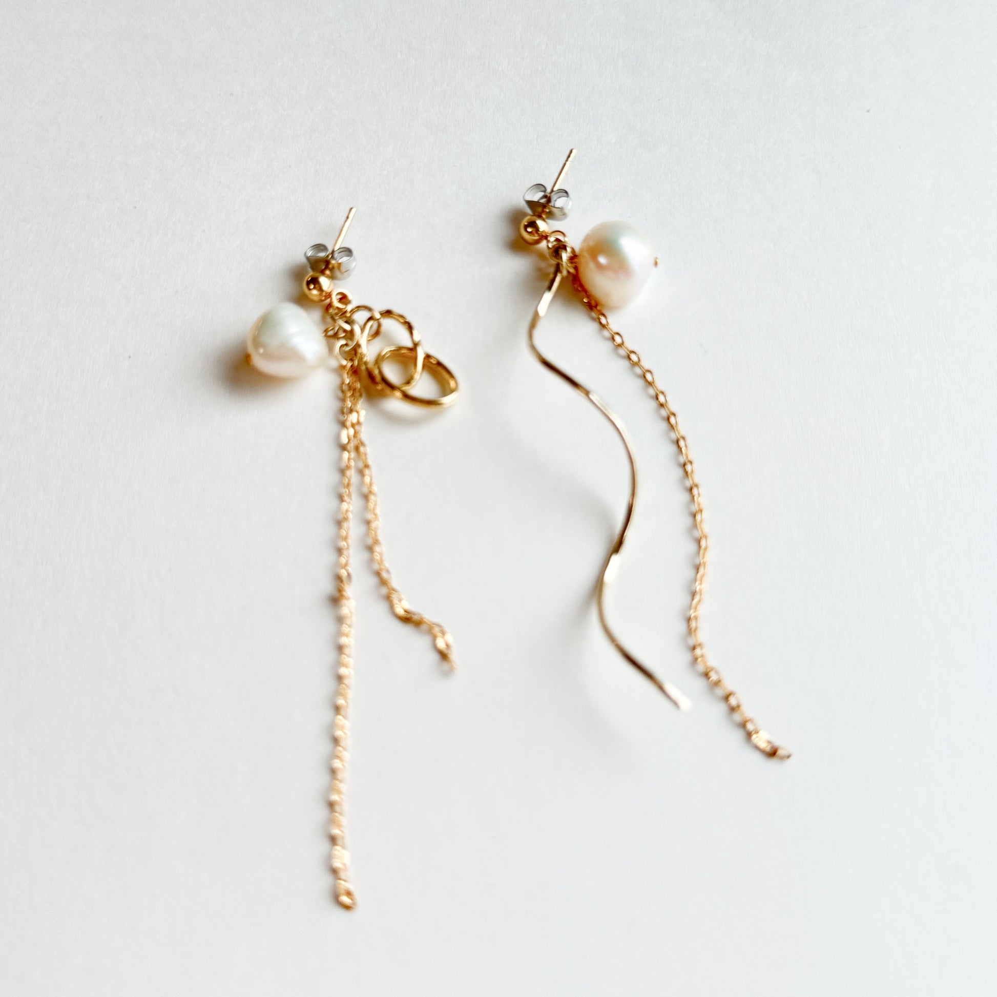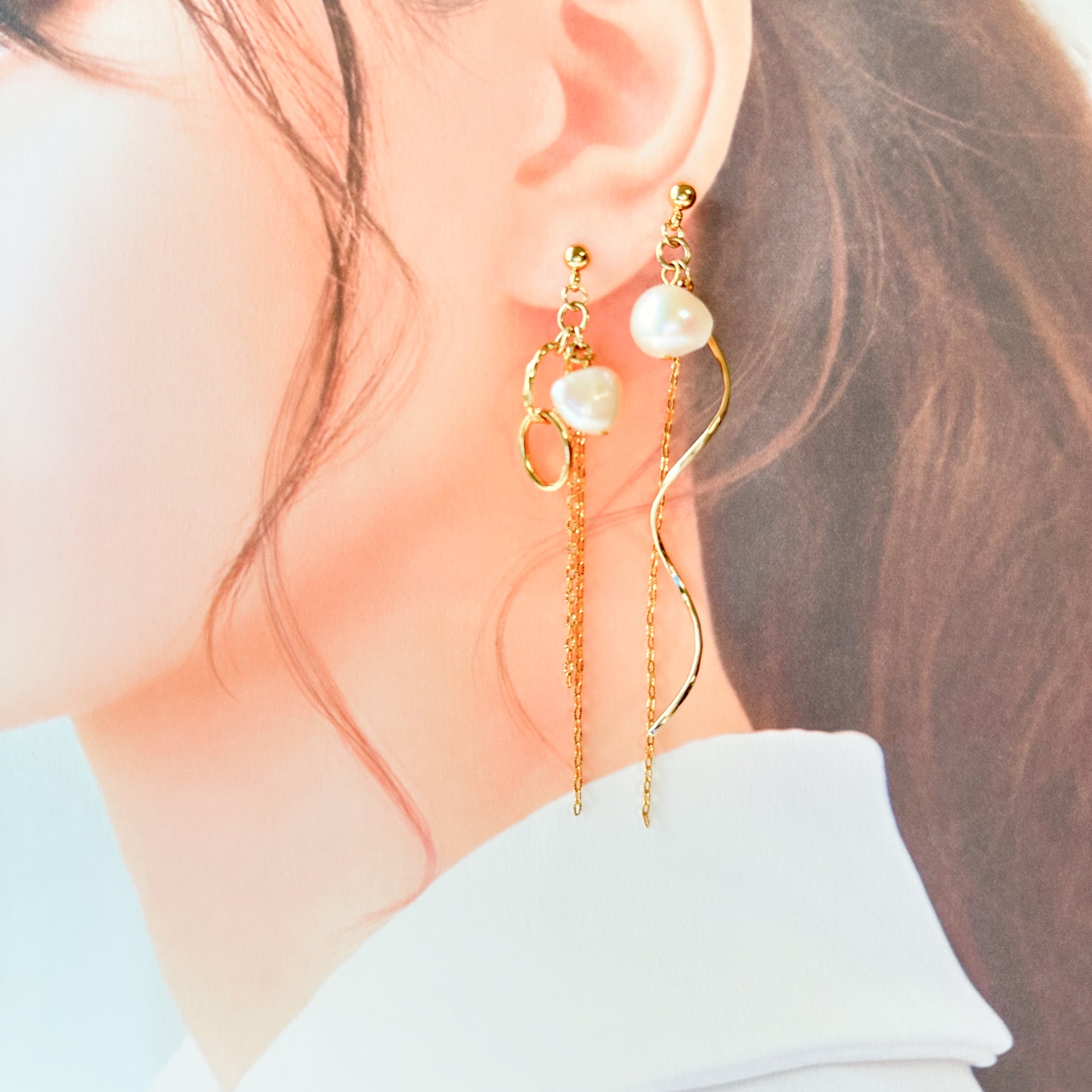 Metal Pearl earrings 003(Gold Freshwater pearl) | メタルパール ピアス 003 | ゴールド 淡水パール