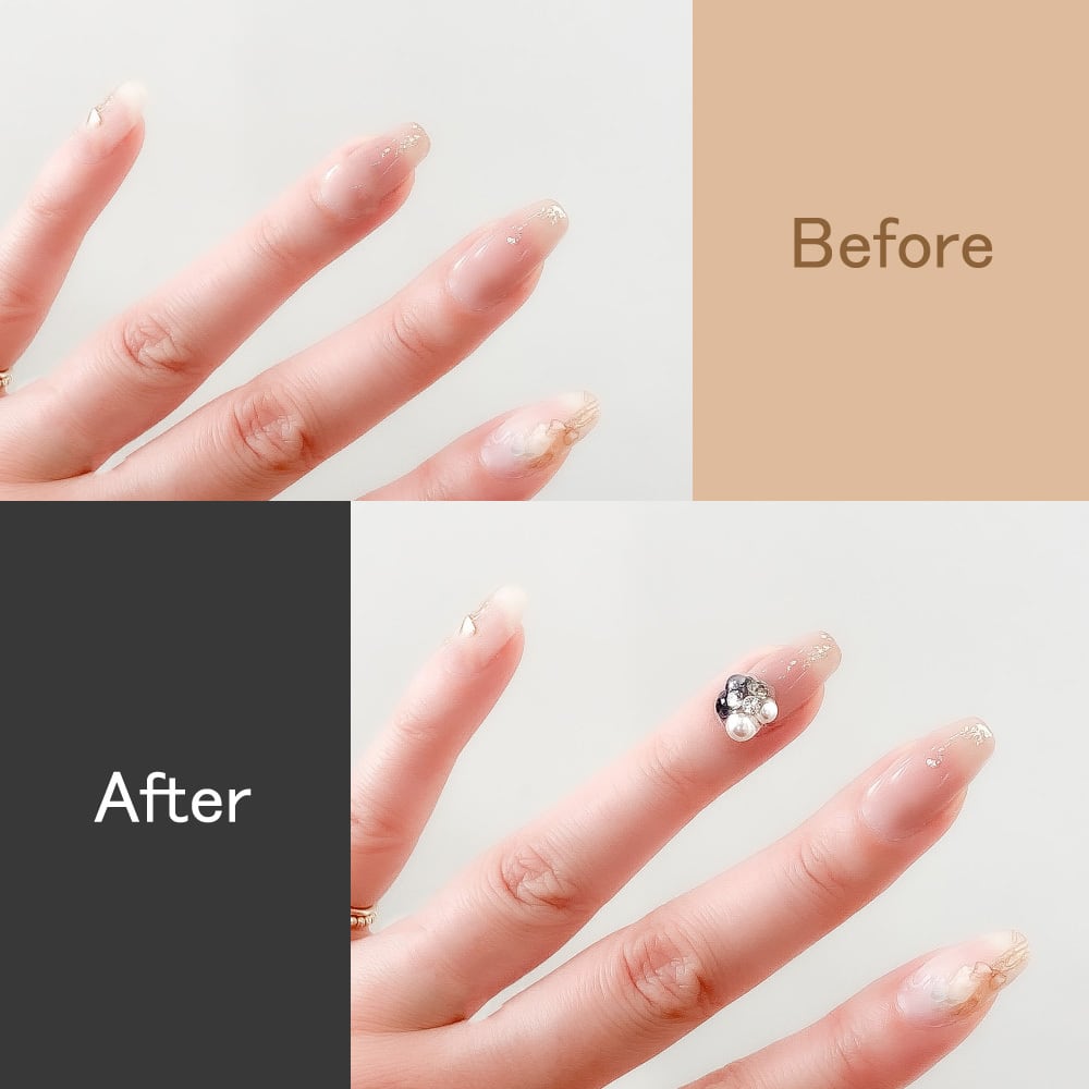 指先が、まるで宝石をまとうような輝きを放ち光の加減でキラキラと幻想的な輝きを与えます。