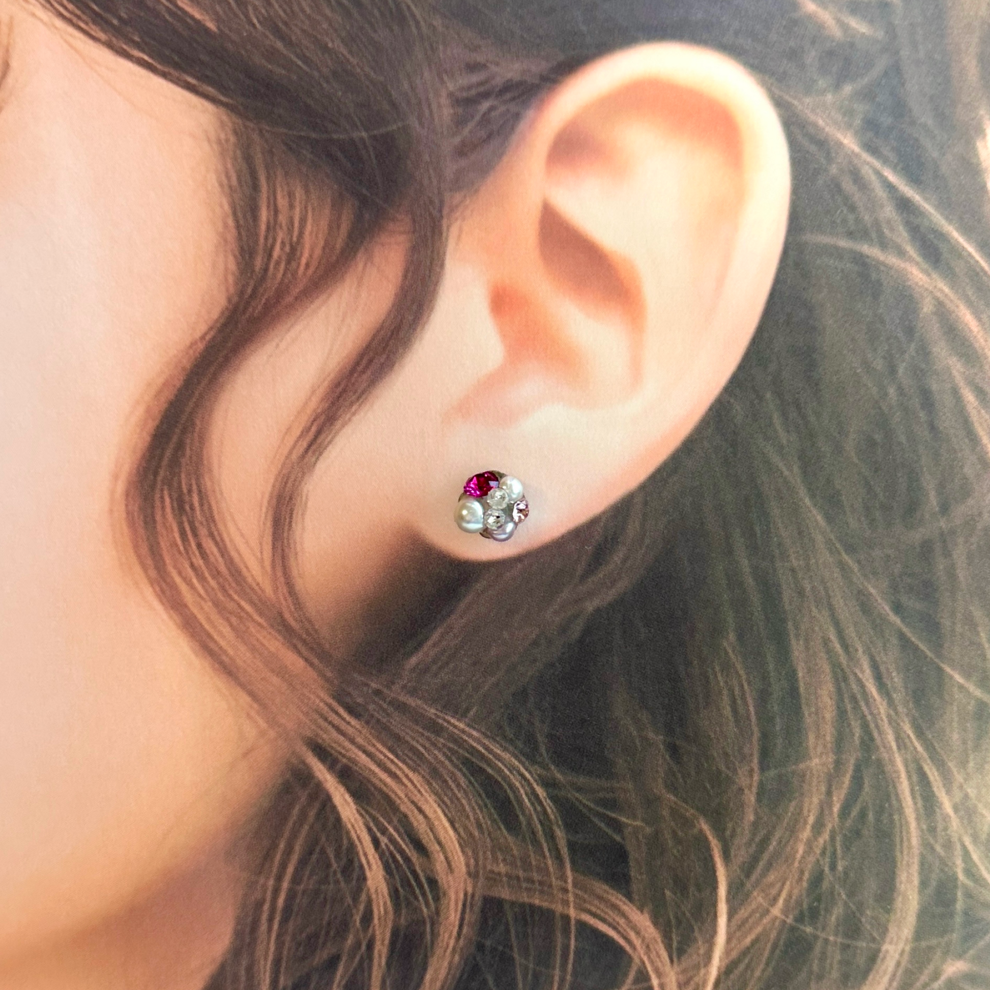 シンプルでありながらも華やかさを演出するアイテムです。 ビビットピンクのクリスタルとパールが、耳元に柔らかな輝きを添えてくれます。シンプルなデザインなので、どんなコーディネートにも合わせやすく、普段使いからパーティーまで幅広く活躍してくれます。