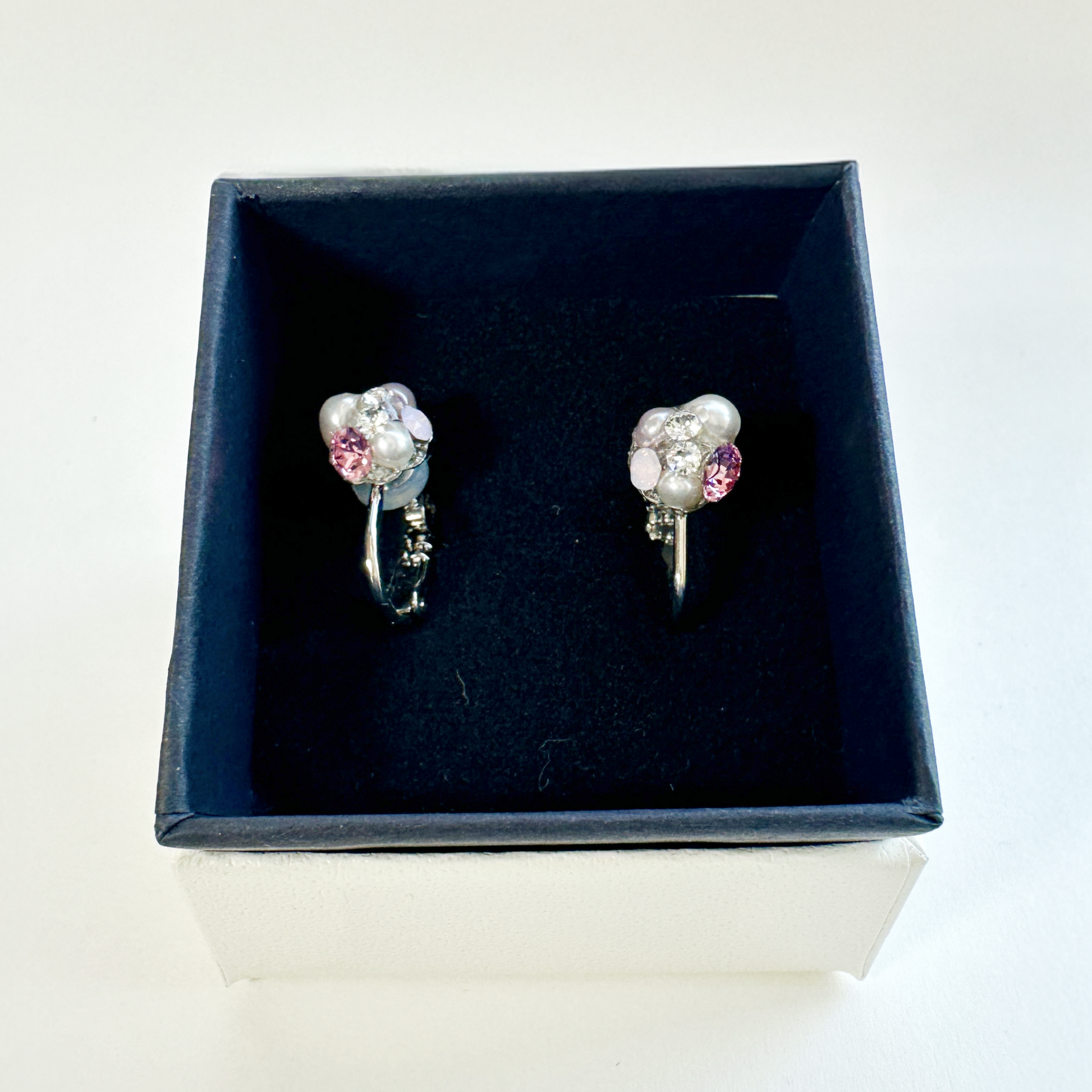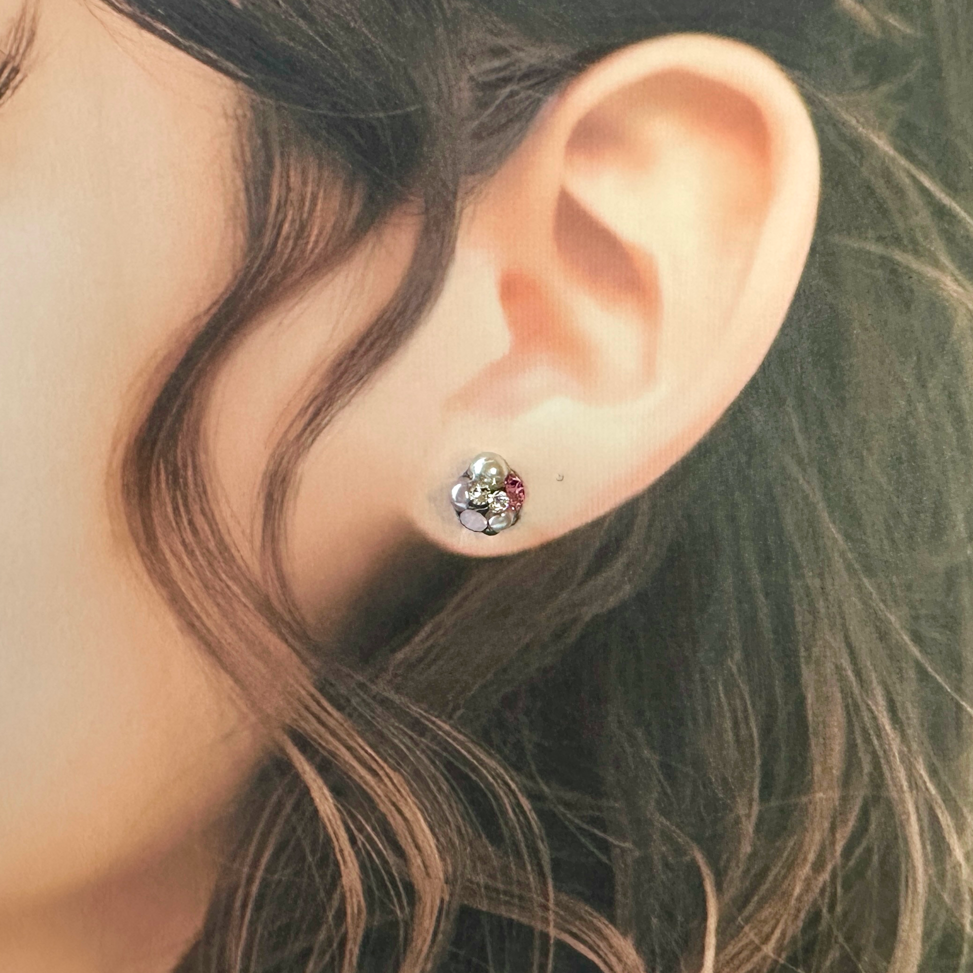シンプルでありながらも華やかさを演出するアイテムです。 ホワイトピンクのクリスタルとパールが、耳元に柔らかな輝きを添えてくれます。シンプルなデザインなので、どんなコーディネートにも合わせやすく、普段使いからパーティーまで幅広く活躍してくれます。