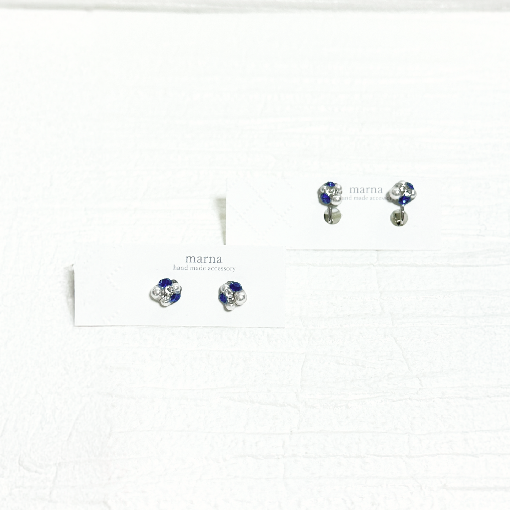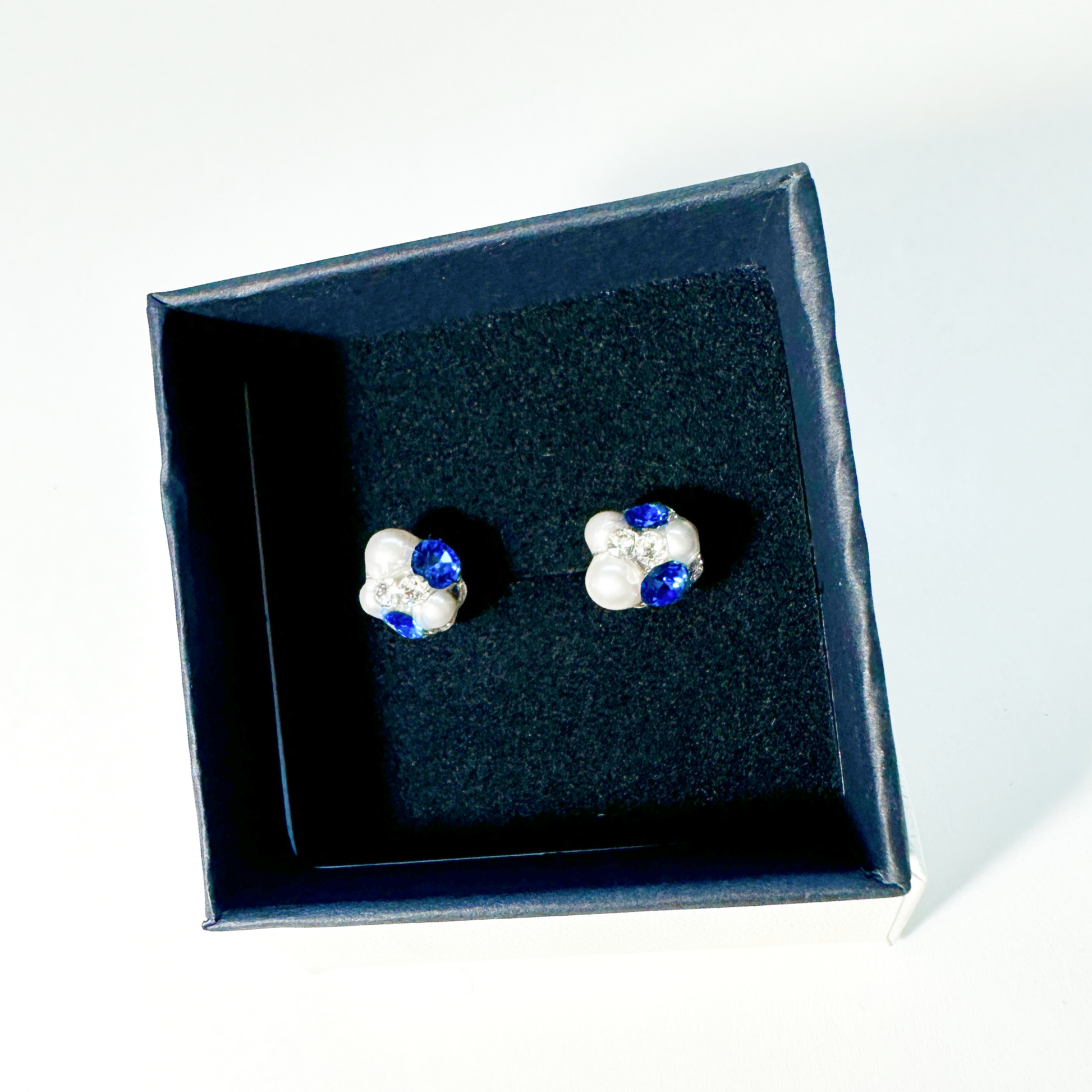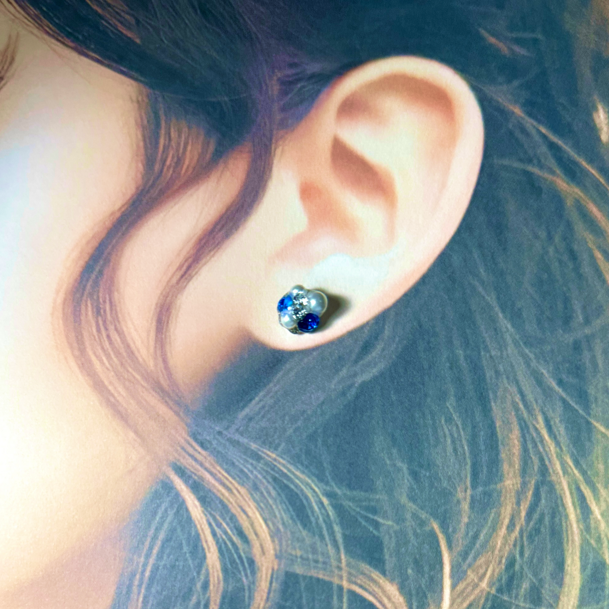 シンプルでありながらも華やかさを演出するアイテムです。 ブルーのクリスタルとパールが、耳元に柔らかな輝きを添えてくれます。シンプルなデザインなので、どんなコーディネートにも合わせやすく、普段使いからパーティーまで幅広く活躍してくれます。
