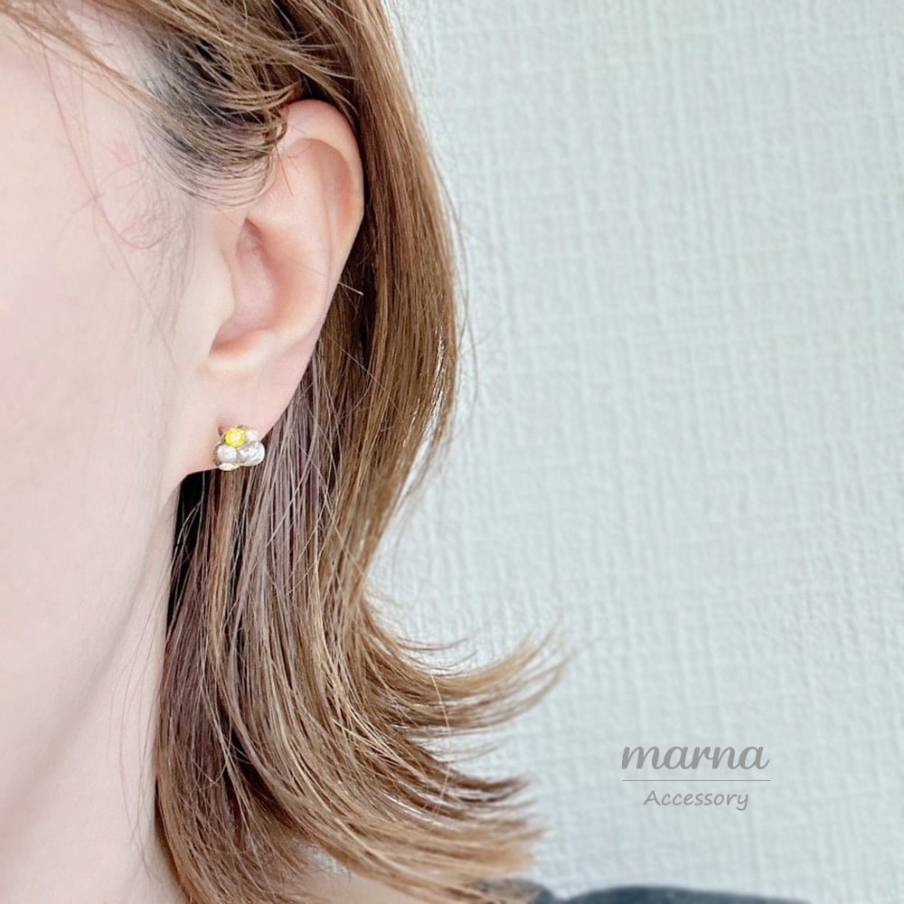 金属はサージカルステンレスを使用、お肌にも優しい素材で安心です。 イヤリング変更可。