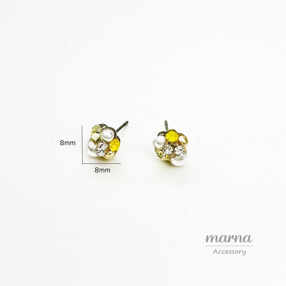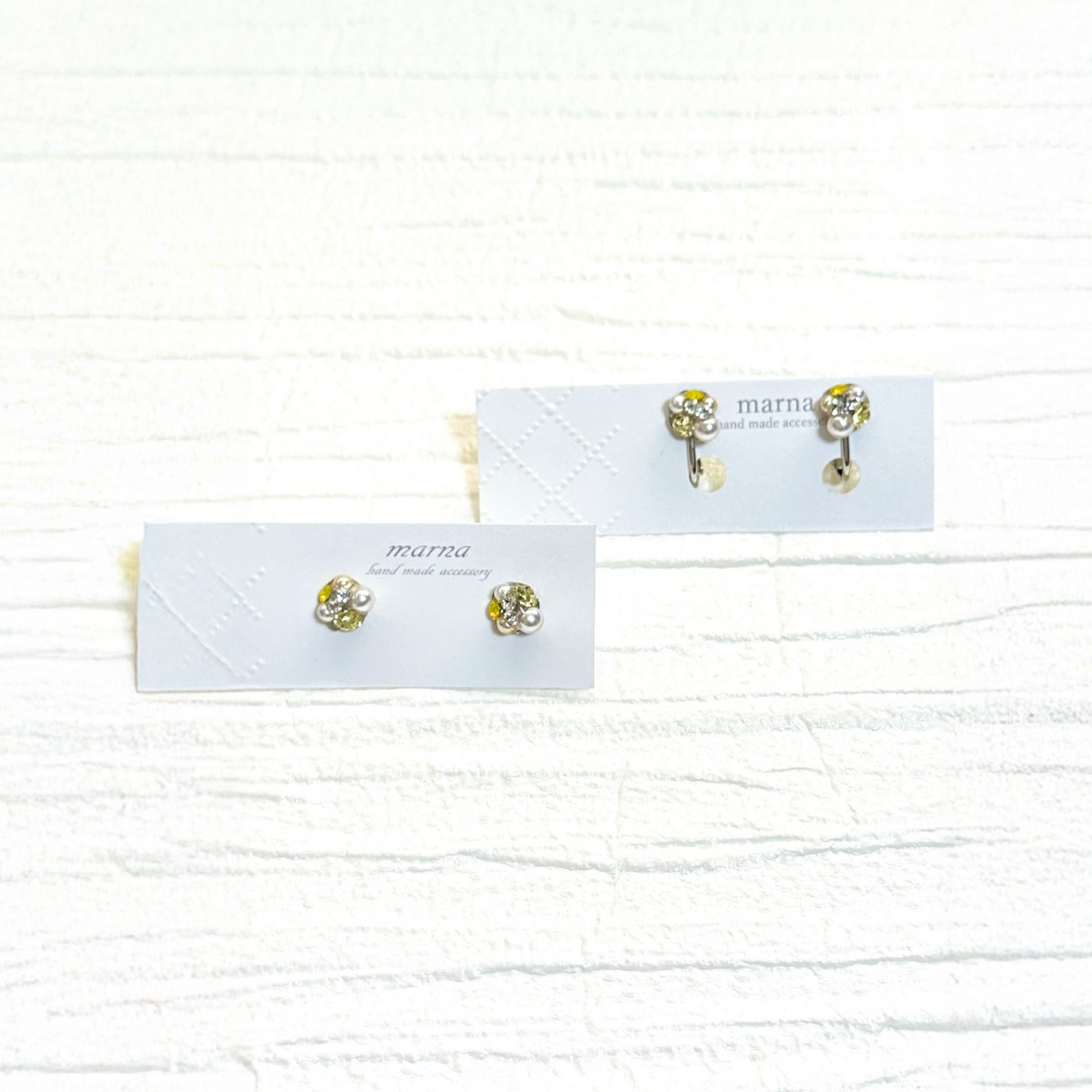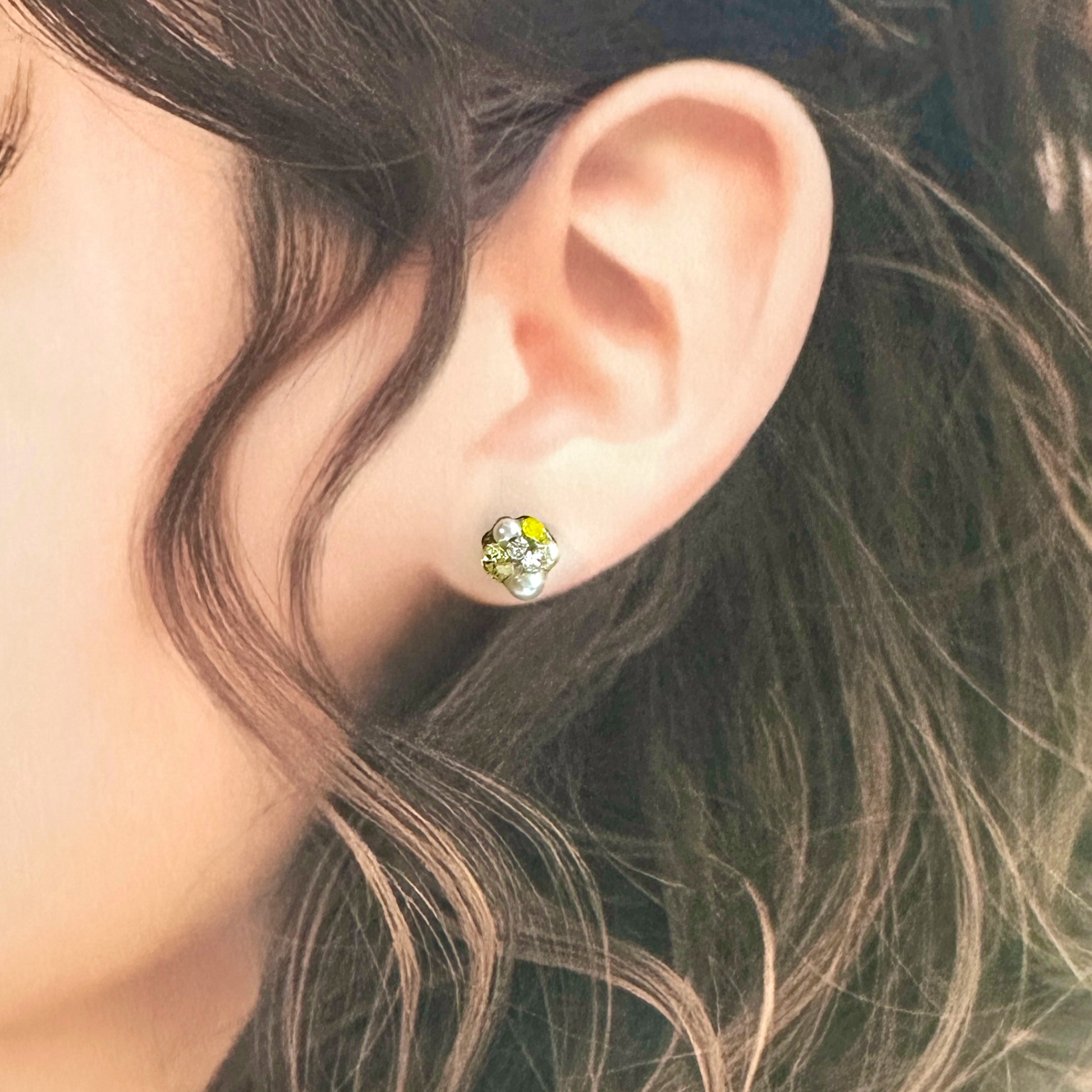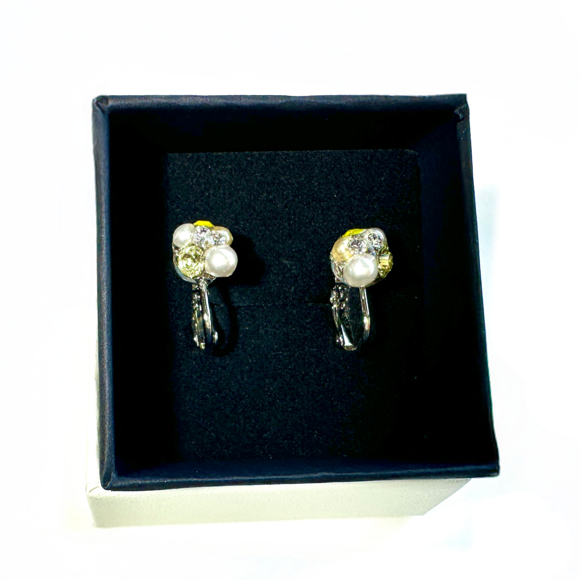 シンプルでありながらも華やかさを演出するアイテムです。 優しいイエローのクリスタルとパールが、耳元に柔らかな輝きを添えてくれます。シンプルなデザインなので、どんなコーディネートにも合わせやすく、普段使いからパーティーまで幅広く活躍してくれます。