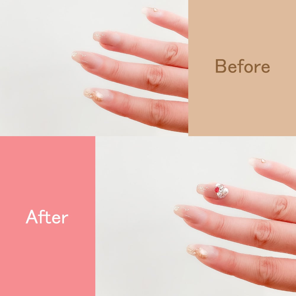 指先が、まるで宝石をまとうような輝きを放ち光の加減でキラキラと幻想的な輝きを与えます。