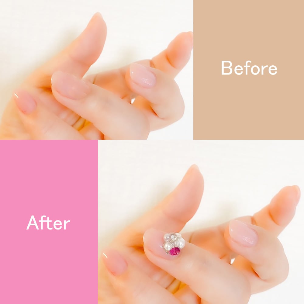 指先が、まるで宝石をまとうような輝きを放ち光の加減でキラキラと幻想的な輝きを与えます。