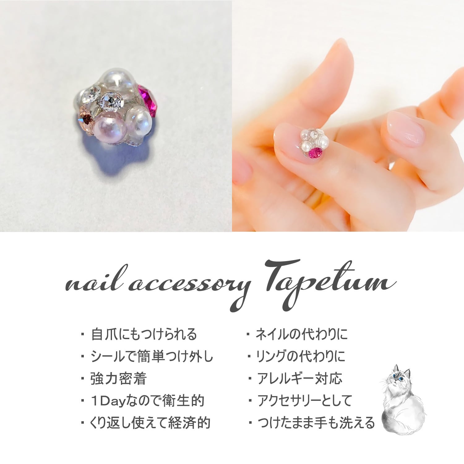ネイルアートが苦手な方でも、簡単にワンランク上のオシャレネイルを手に入れられ、ネイル派の方も、自爪派の方もオシャレの可能性が広がる、タペタムネイルアクセサリーです。