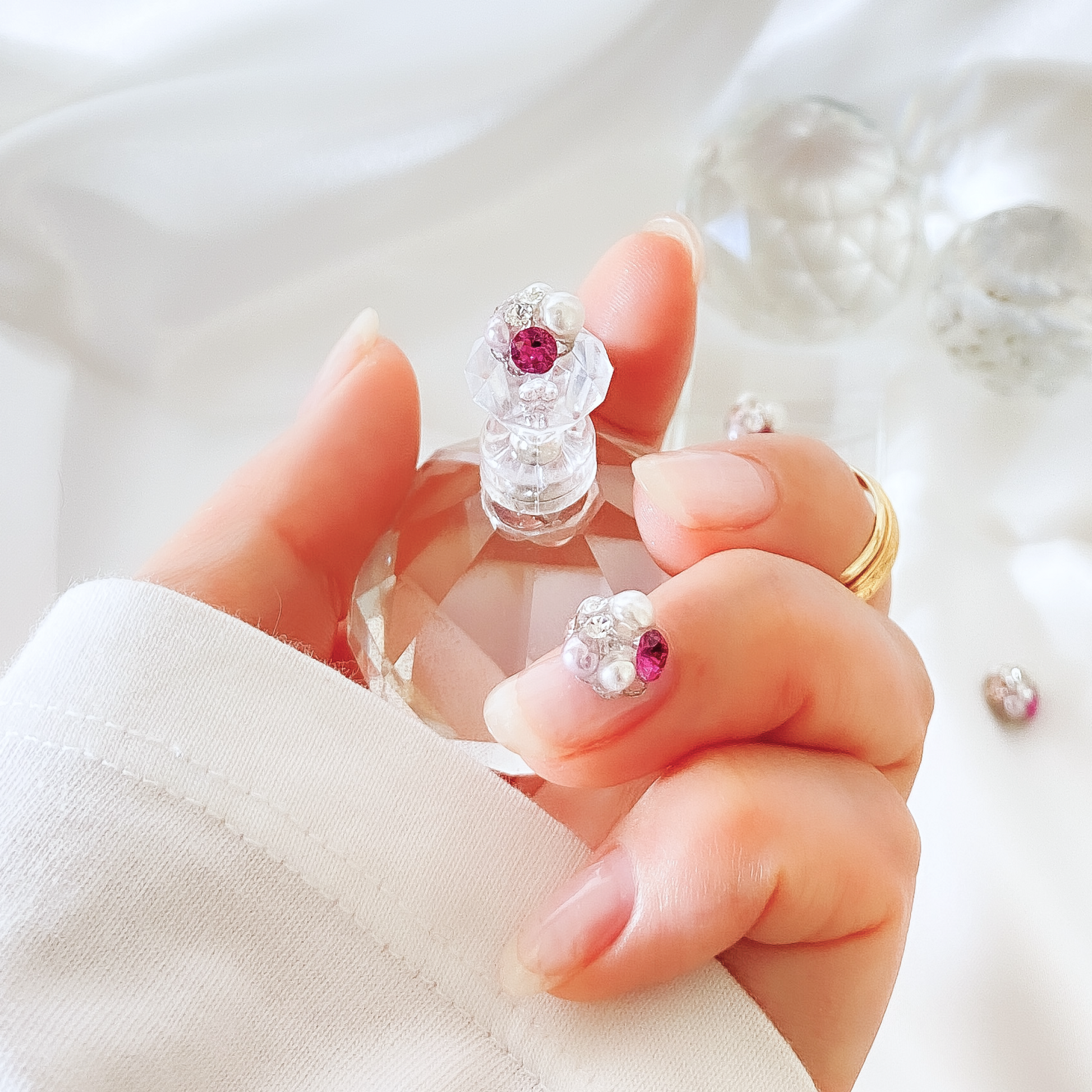 7月の誕生石のような美しいビビットピンク色が、指先を華やかに彩ります。