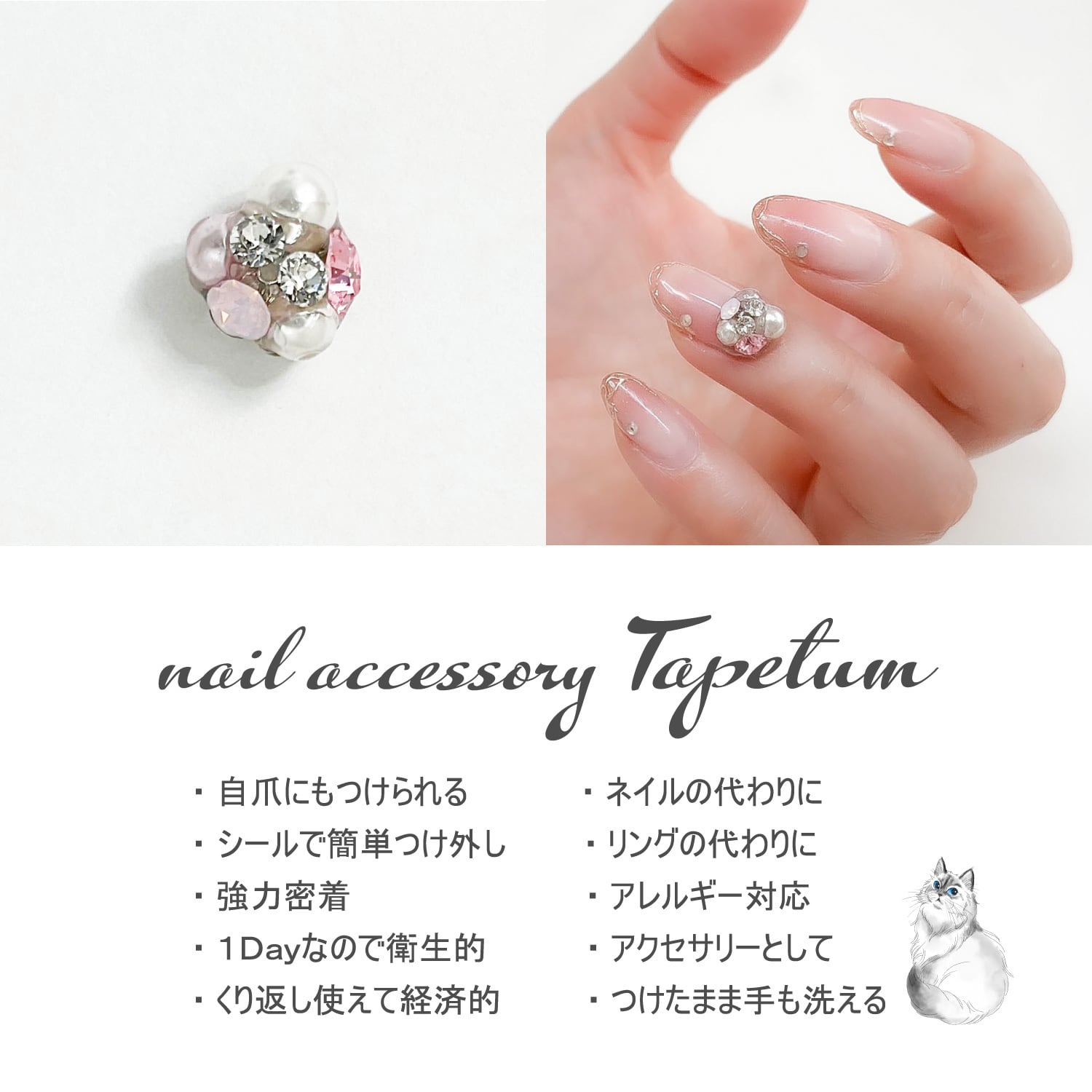 ネイルアートが苦手な方でも、簡単にワンランク上のオシャレネイルを手に入れられ、ネイル派の方も、自爪派の方もオシャレの可能性が広がる、タペタムネイルアクセサリーです。