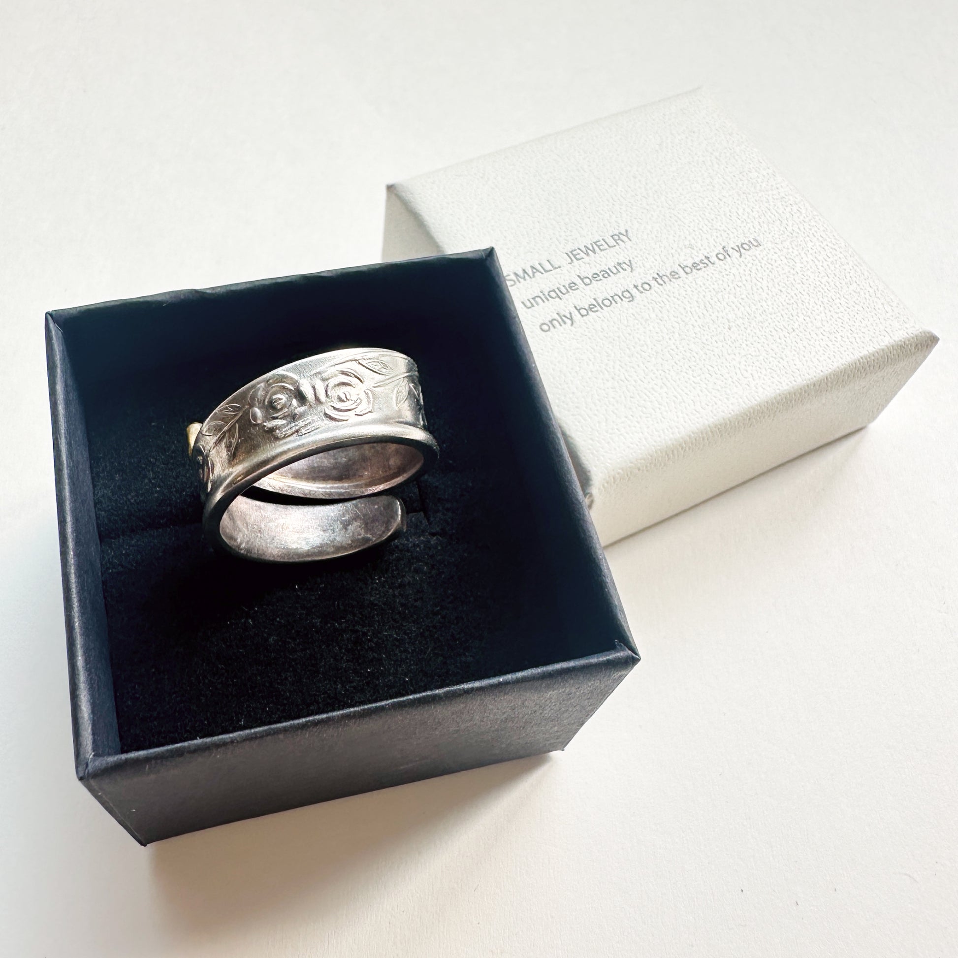 国内何十年と受け継ぐヴィンテージならではの経年変化を愛していただければと思います。「スプーンからリングに形を変え、身に着ける感動」を体験してみてください。