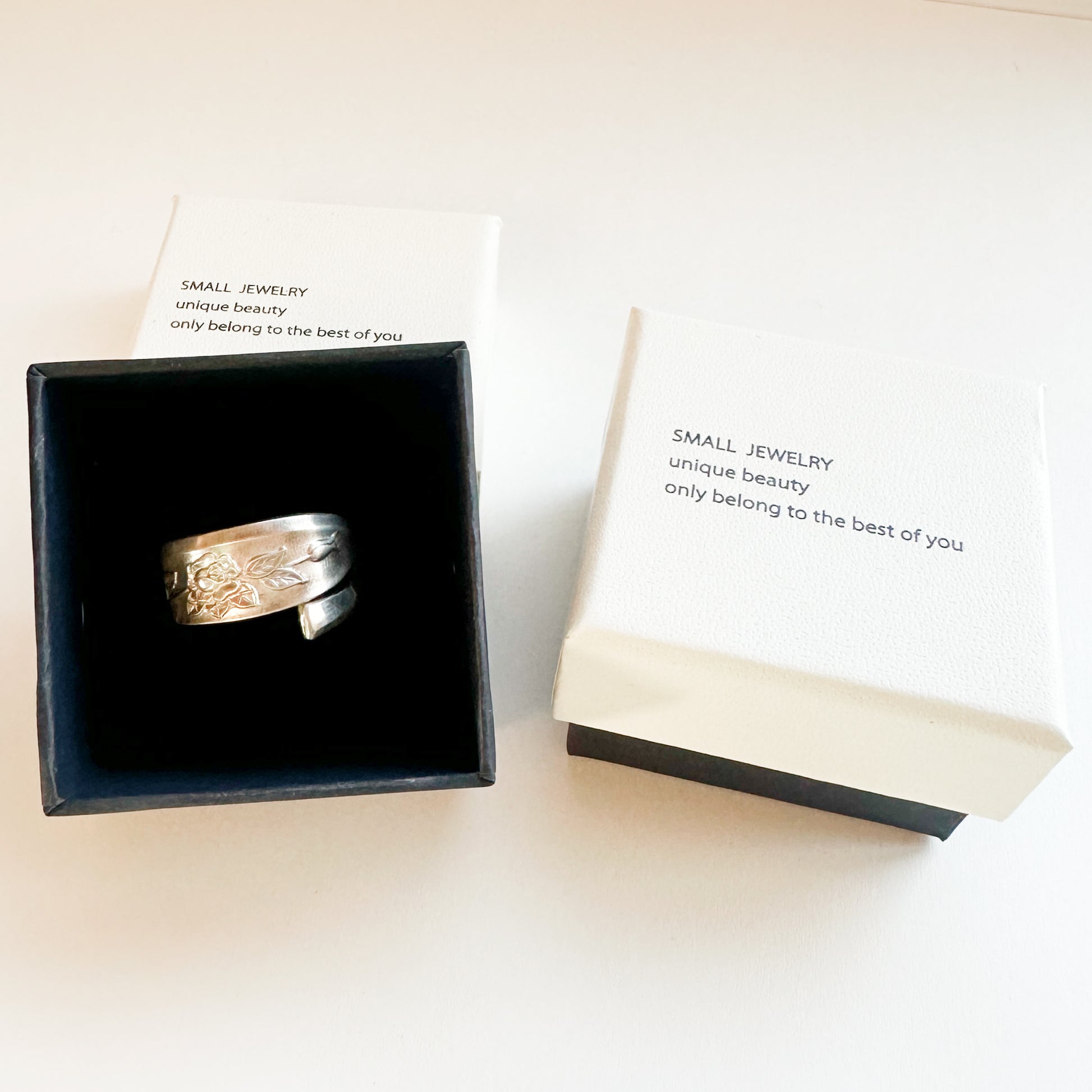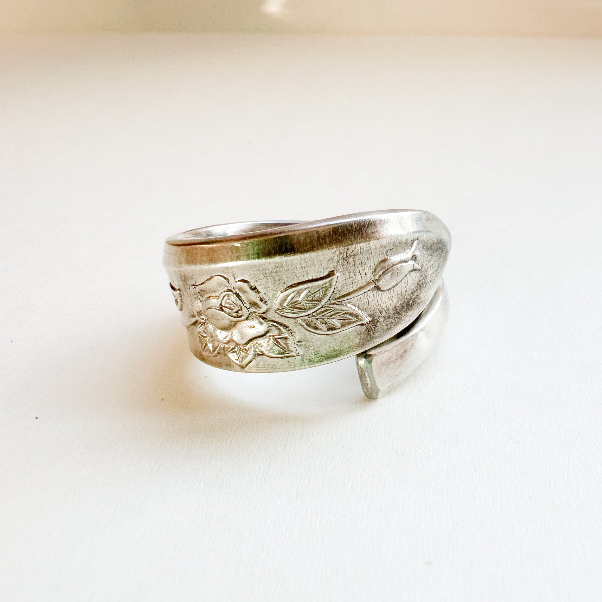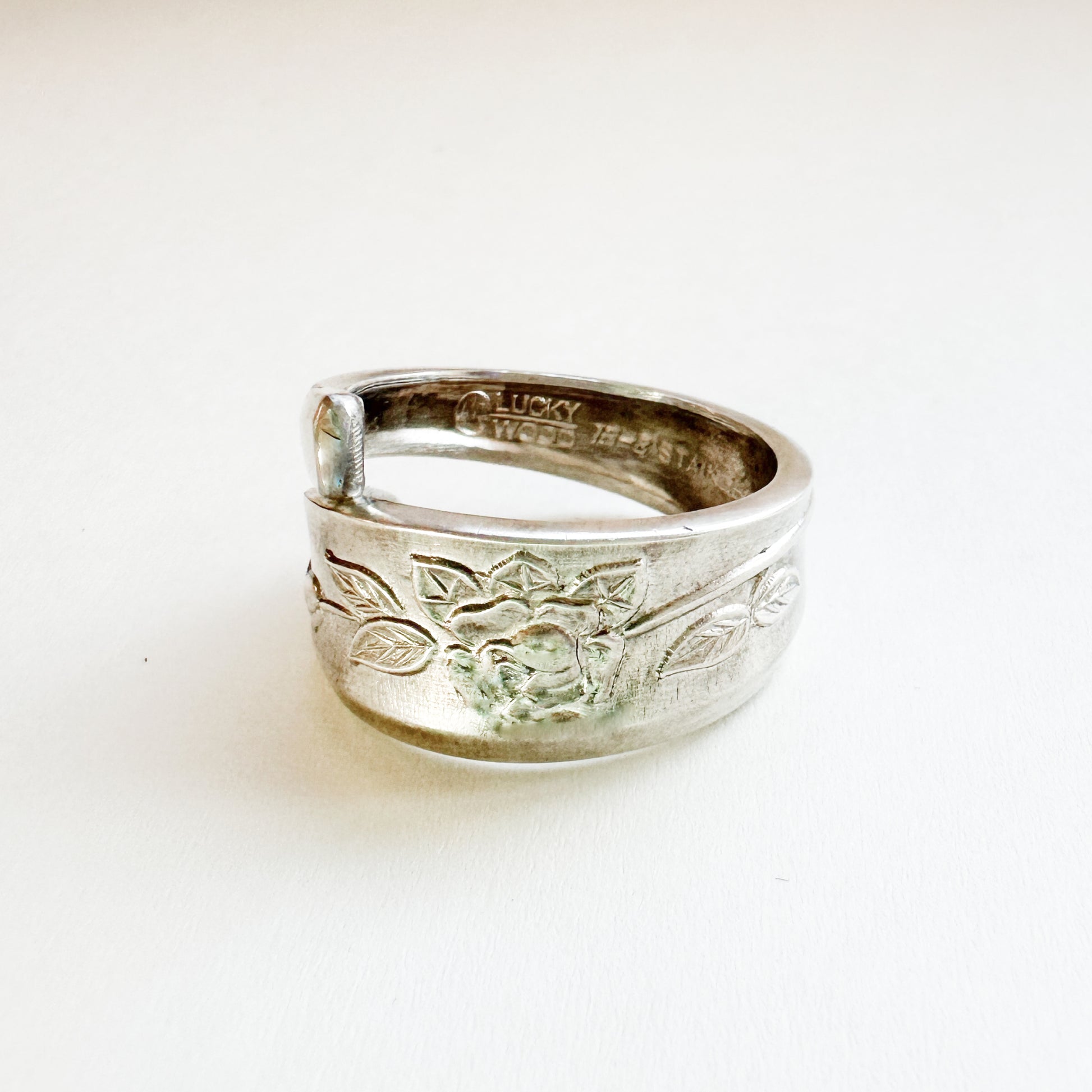 Vintage Spoon Ring 014 | ヴィンテージスプーンリング || flower pattern(花柄) | silver、ステンレス | 北米 | 限定品なので世界に一つしかないリングです。国内含め世界中から何十年~何百年と受け継ぐヴィンテージならではの経年変化を愛でていただければと思います。「スプーンからリングに形を変え、身に着ける感動」を体験してください。