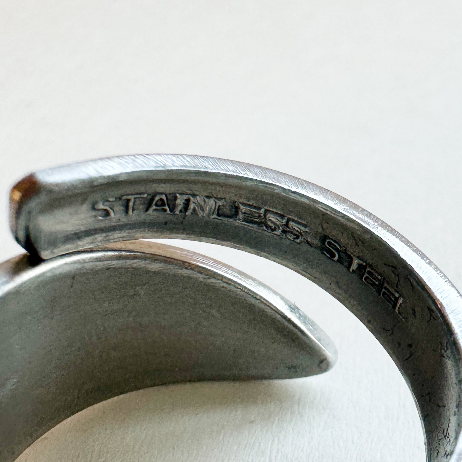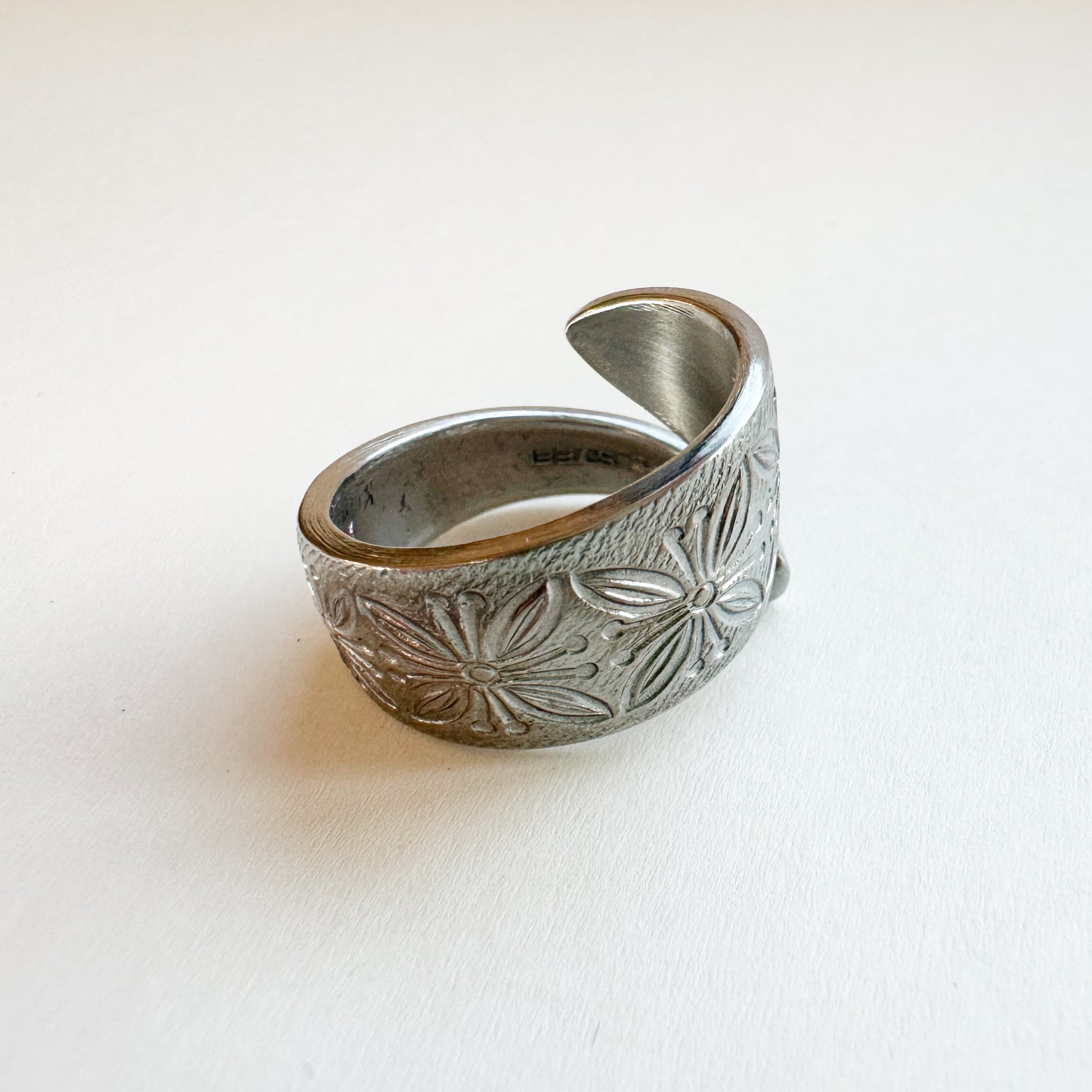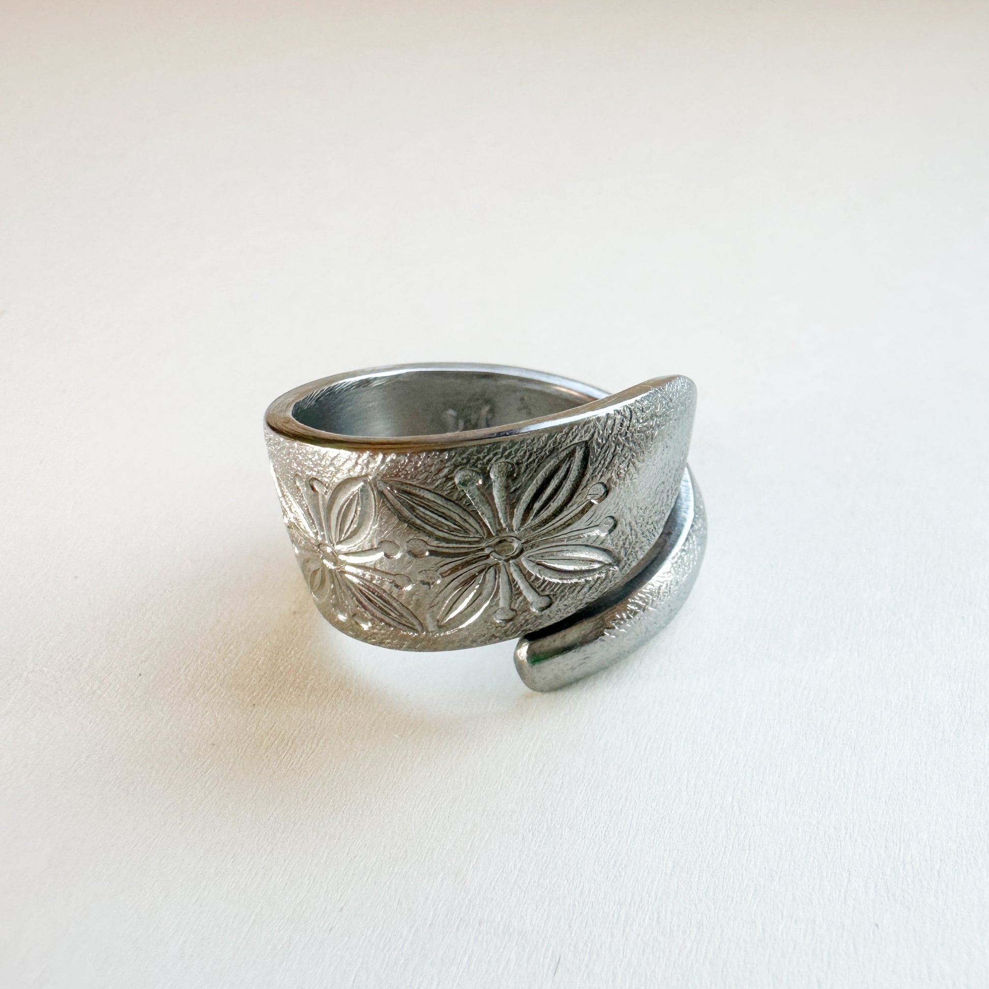 Vintage Spoon Ring 018 | ヴィンテージスプーンリング || flower pattern(花柄) || ステンレス | 昭和初期 | ステンレスで肌にも優しく変色しにくいです。限定品オンリーワンなので世界に一つしかないリングです。国内何十年と受け継ぐヴィンテージならではの経年変化を愛でていただければと思います。「スプーンからリングに形を変え、身に着ける感動」を体験してください。